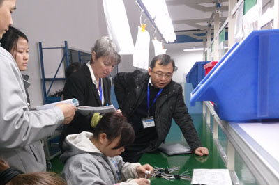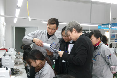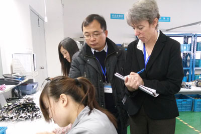 在品質部經理胡俊的陪同下,客戶參觀了各生產車間、倉儲現(xiàn)場、辦公區(qū)域等。胡經理認真地向客戶介紹產品實現(xiàn)的每一道工序,并讓客戶親自動手檢驗。對關鍵過程尤為仔細,查閱作業(yè)指導書、過程檢驗記錄等??蛻粢卜浅UJ真地向我們了解各種產品的性能和用途,不停的記錄,并連聲稱贊“Very Good!”。