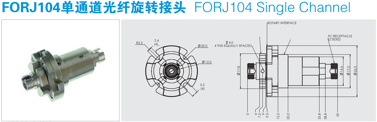 FORJ104單通道光纖滑環(huán)用于單?;蚨嗄O到y(tǒng)的光電旋轉(zhuǎn)連接;完全的雙向旋轉(zhuǎn);與現(xiàn)有的電氣滑環(huán)設(shè)計相融合;全封閉結(jié)構(gòu);能為客戶量身定制所需要的光纖滑環(huán)