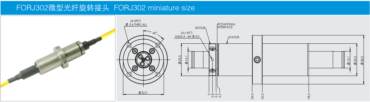 FORJ302光纖旋轉(zhuǎn)接頭用于單模或多模系統(tǒng)的光電旋轉(zhuǎn)連接;完全的雙向旋轉(zhuǎn);與現(xiàn)有的電氣滑環(huán)設(shè)計(jì)相融合;全封閉結(jié)構(gòu);能為客戶量身定制所需要的光纖滑環(huán)