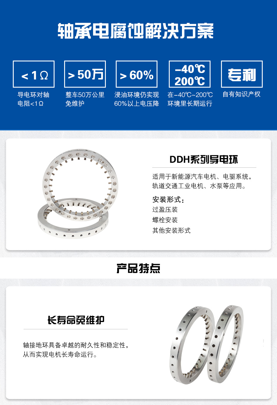 全盛機(jī)電DDH系列軸接地環(huán)由導(dǎo)電纖維和金屬體組成,用于變頻電機(jī)及其耦合設(shè)備的電腐蝕防護(hù),導(dǎo)電環(huán)可降低軸承與接地結(jié)構(gòu)之間的電勢(shì)感應(yīng),有效解決軸電流引起的電腐蝕現(xiàn)象,保護(hù)設(shè)備防止損壞。適用于新能源汽車電機(jī)、電驅(qū)系統(tǒng),軌道交通、工業(yè)電機(jī)、水泵等應(yīng)用。