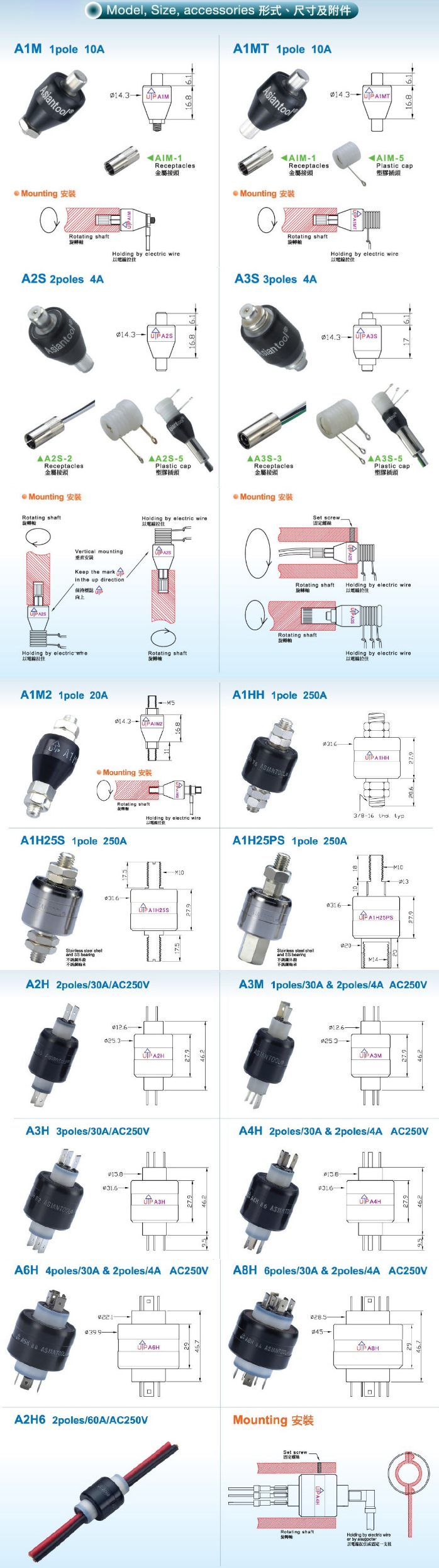 型號(hào) | 國(guó)外型號(hào) | 極數(shù) | 電流 Amp |